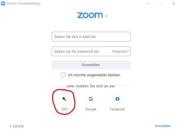 Der Login bei Zoom funktioniert ausschließlich über folgende Seite (dort auf Sign in klicken):