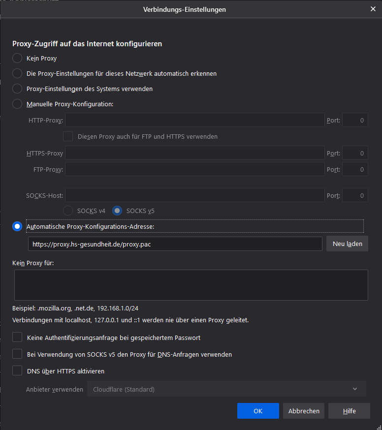 - Verwendung der Manuellen Proxy Konfiguration, statt der Automatischen.