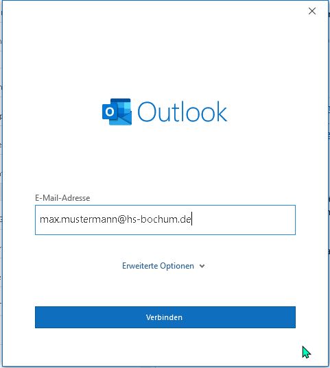 Tragen Sie Ihre persönliche Mailadresse ein, wie sie in der E-Mail des IT-Supports ausgewiesen wird, und klicken Sie auf "Verbinden". Der Vorgang dauert nun einen Moment.