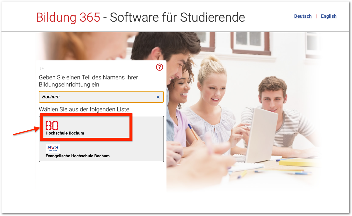 1. Bildung365.de aufrufen und Hochschule Bochum auswählen
