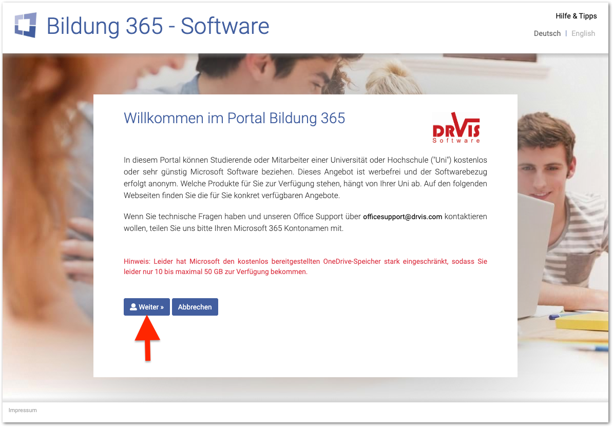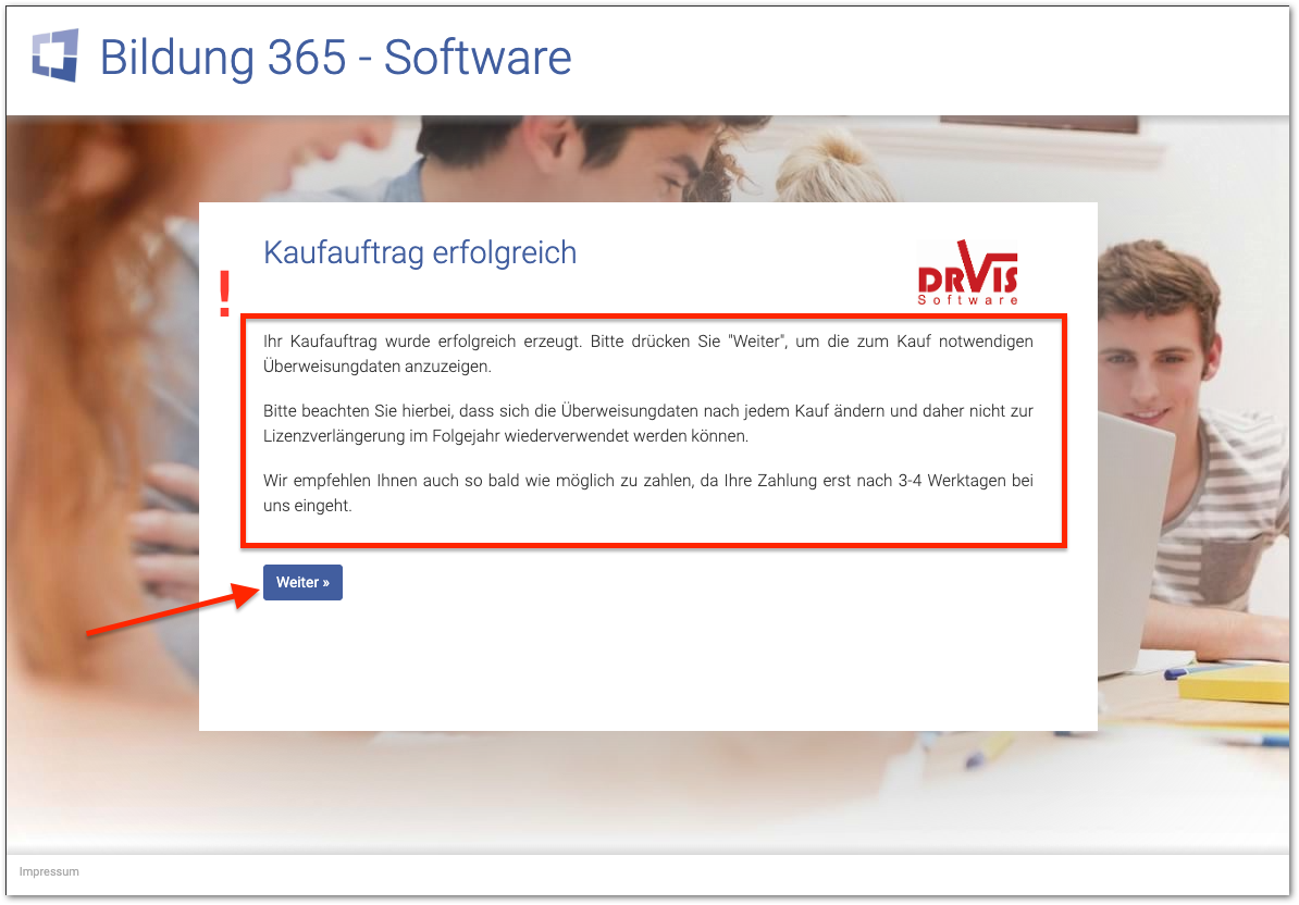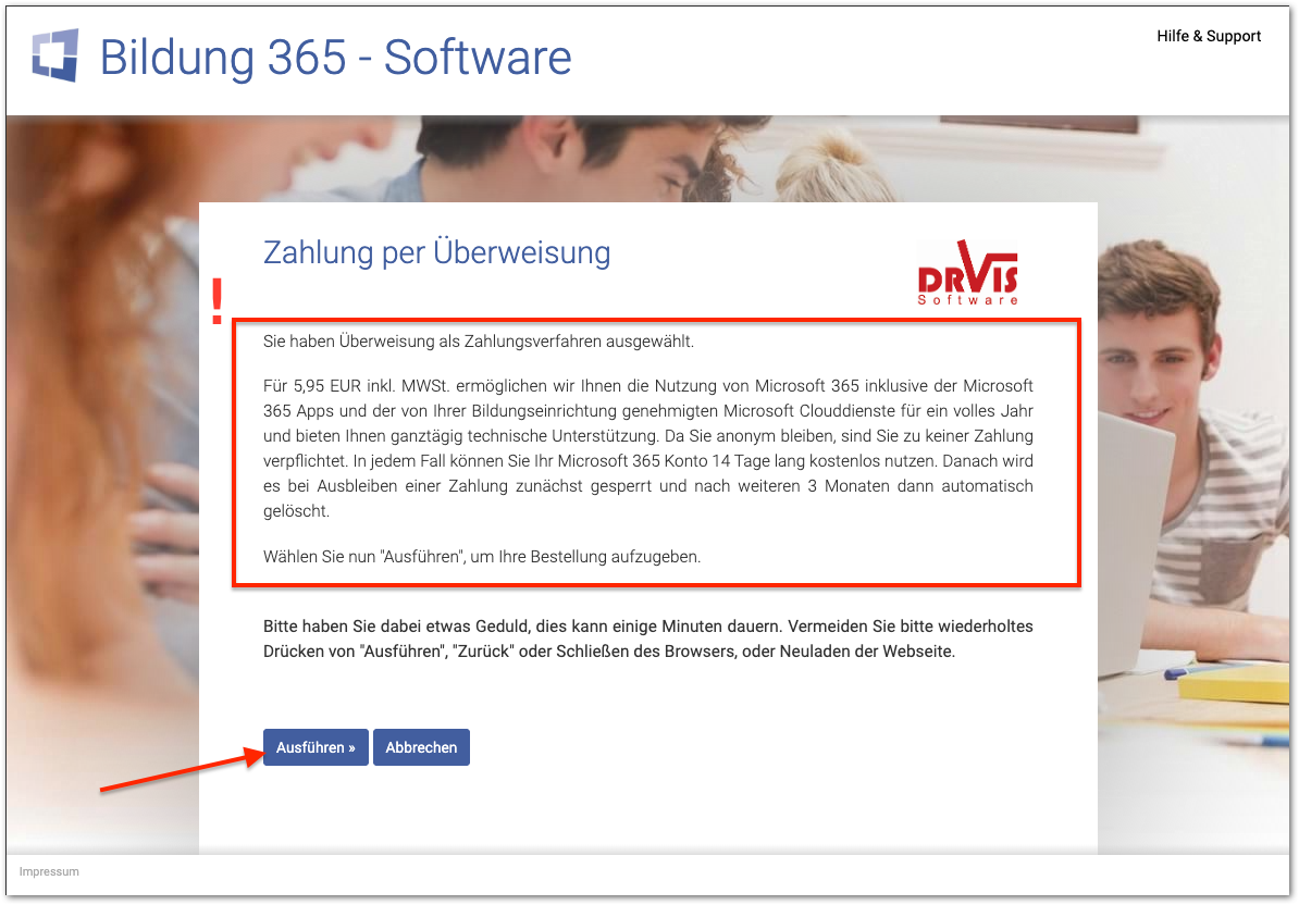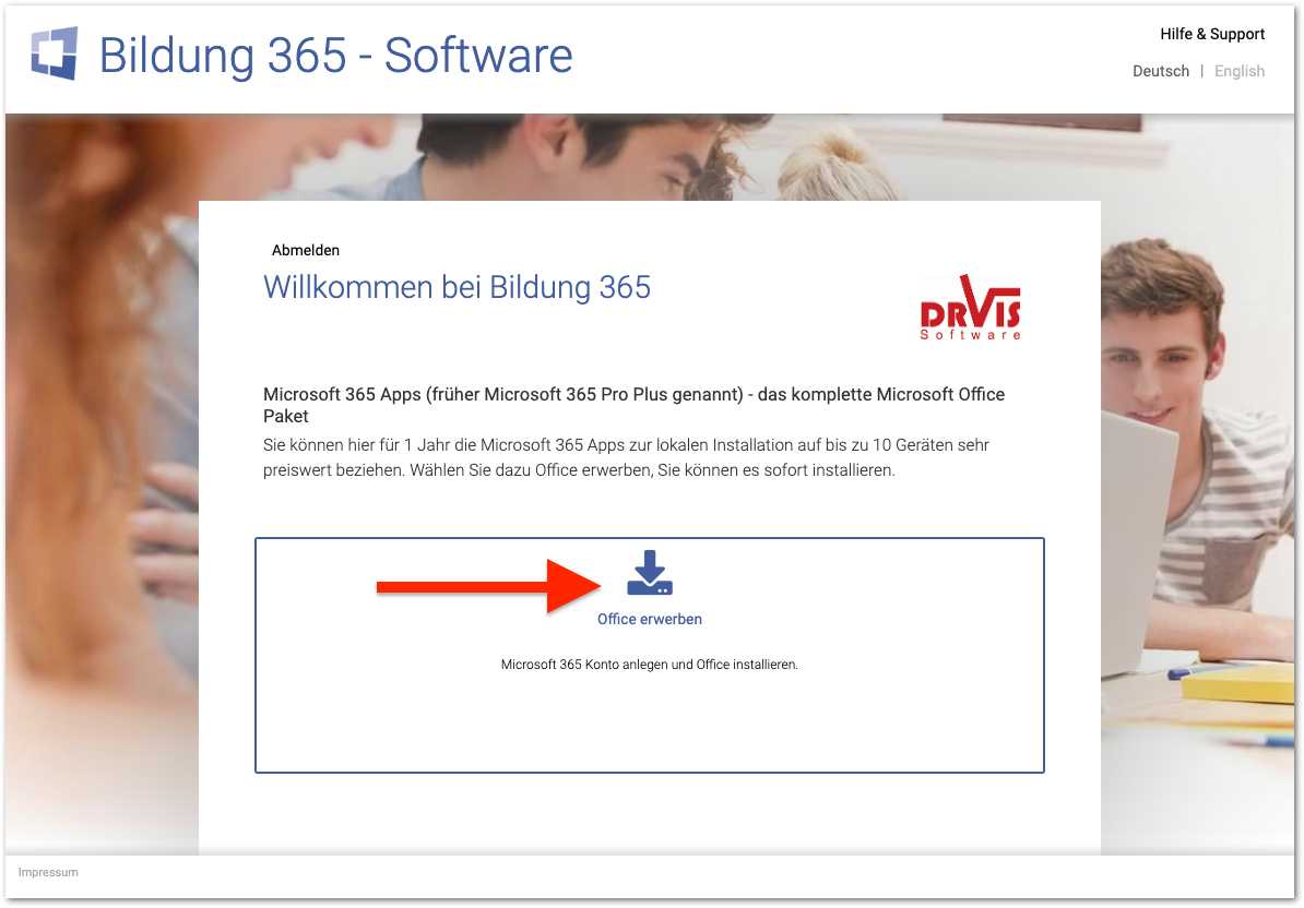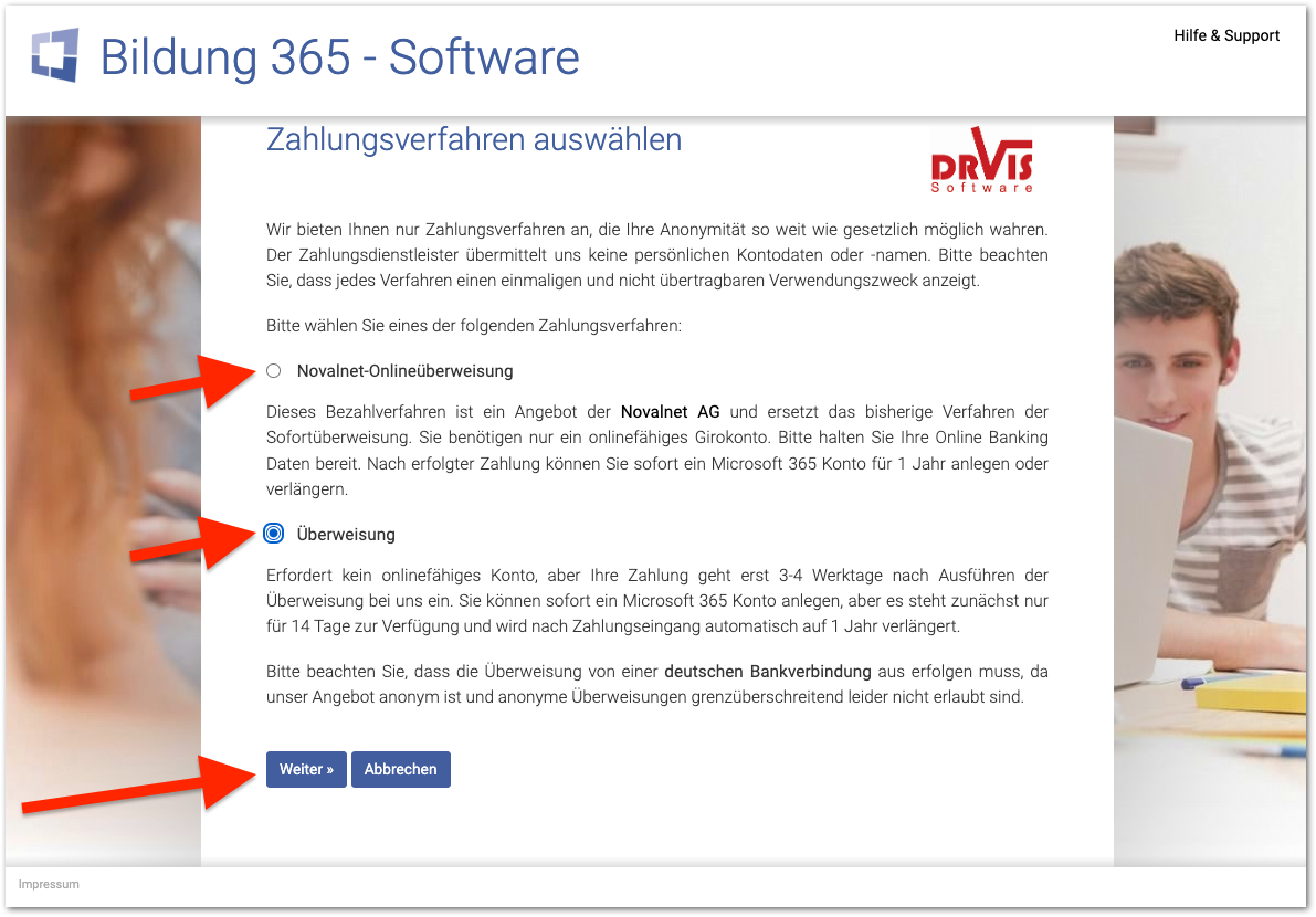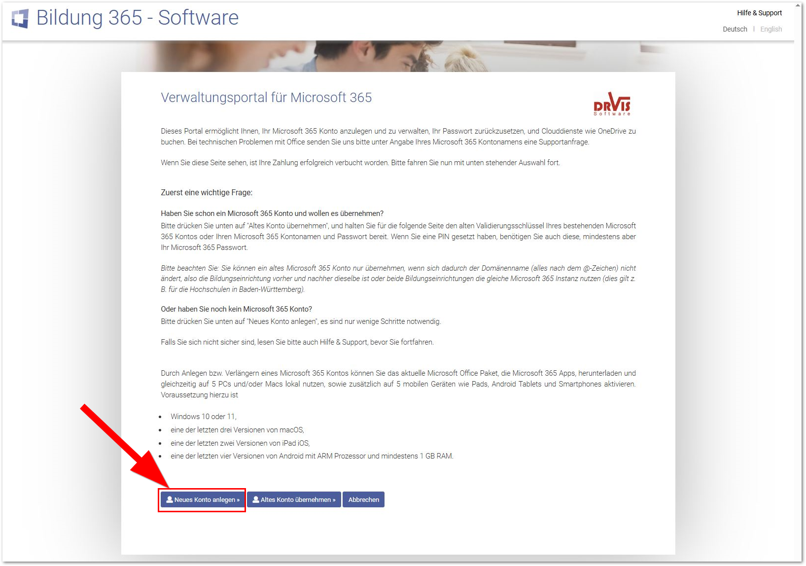 - Sie verwalten (bestellen/ verlängern/ Passwort zum M-Account zurücksetzen) Ihr Microsoft-Konto über den Dienst von DrVis (vgl. Schritt 1 & 2)