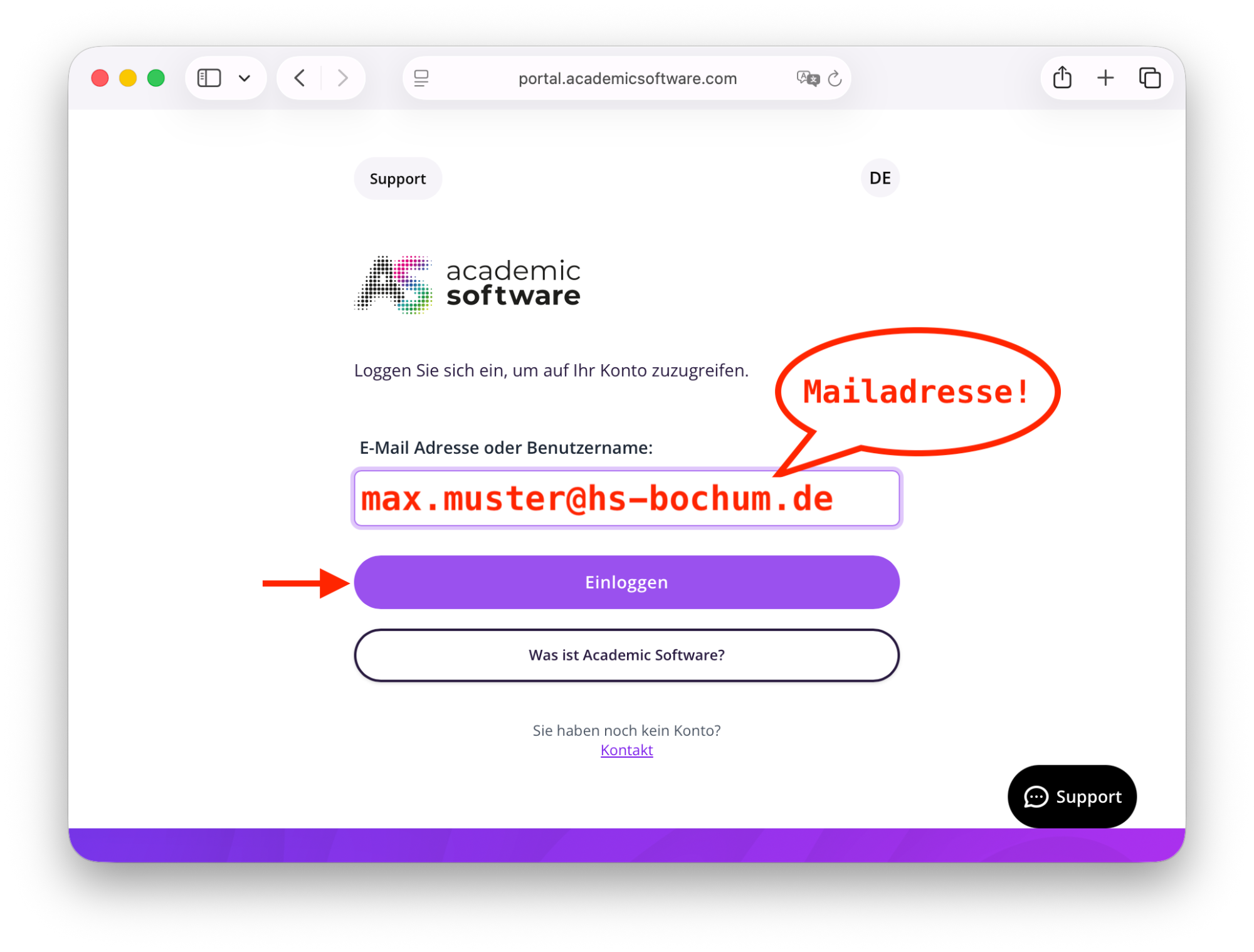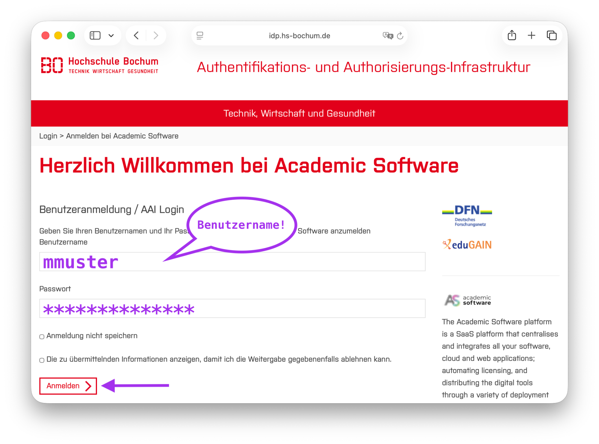 2. Geben Sie Ihre Anmeldedaten ein: