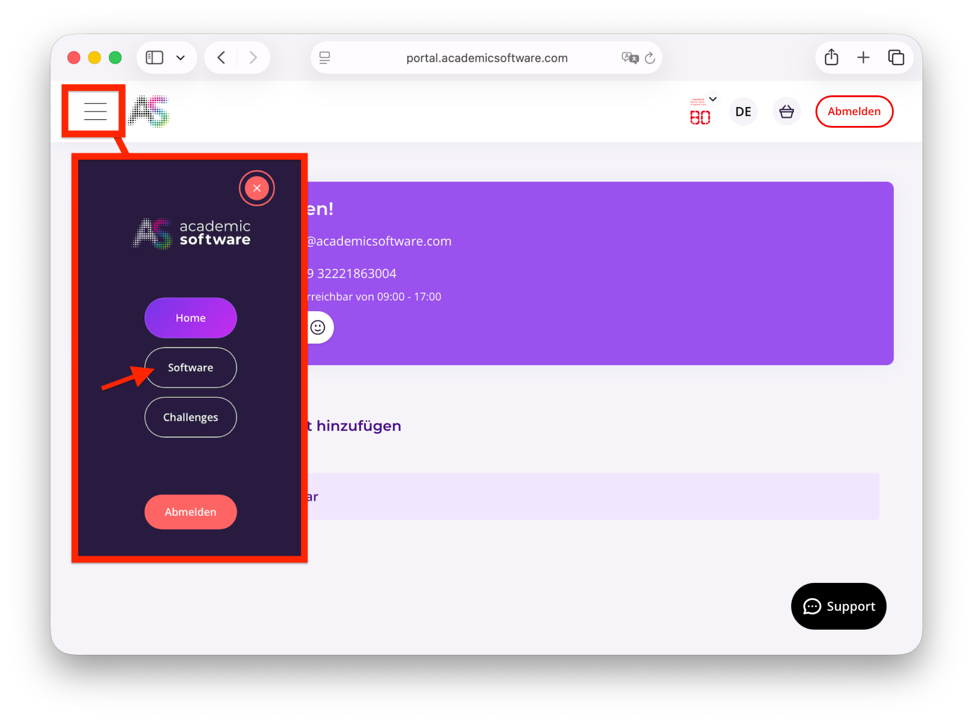 5. Über das ≡Menü (Apple-Nutzer) :